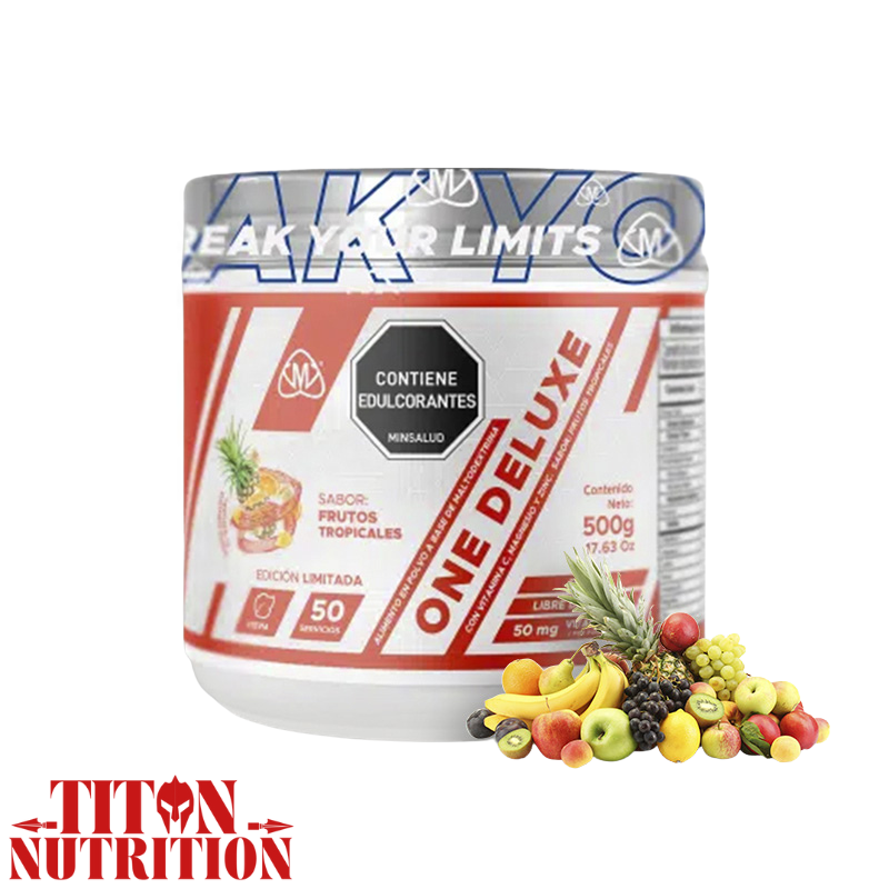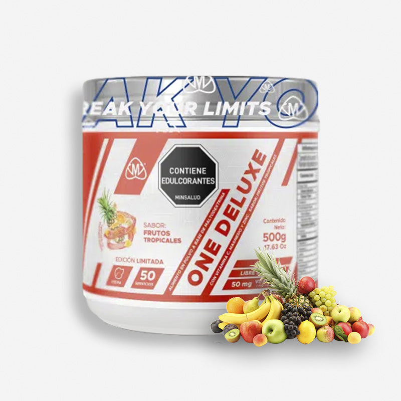 One Deluxe is a maltodextrin-based powdered food with vitamin C, magnesium and zinc, and a tropical flavor.